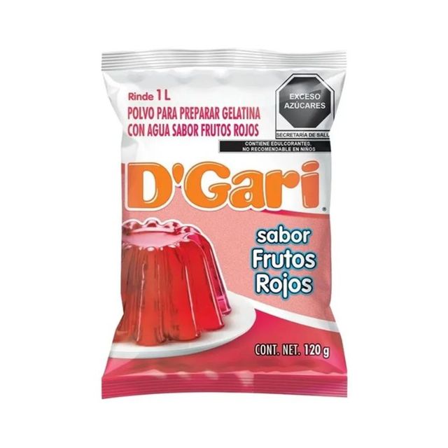 Polvo para reparar gelatina sabor a Frutos Rojos, en presentación 120g.
