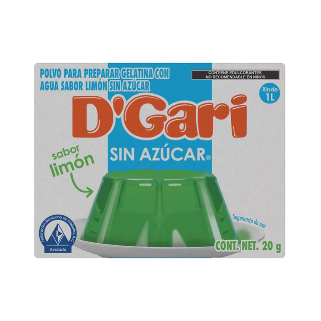 Polvo para reparar gelatina sin Azúcar sabor Limón, en presentación 20g.