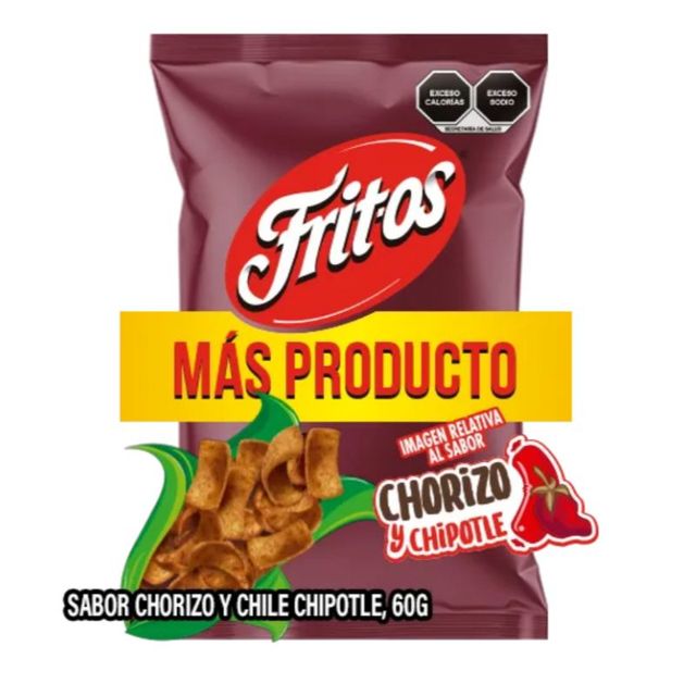 Botana frita de maíz nixtamalizado sabor chorizo y chile chipotle.