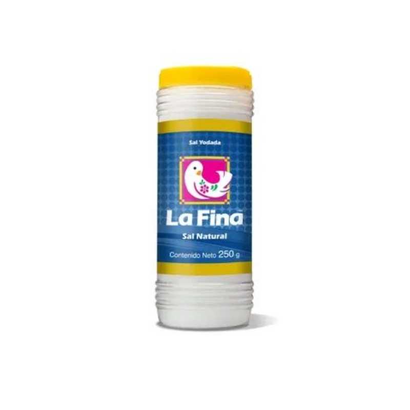 Sal natural yodada marca La Fina en presentación pequeña de 250 gramos.