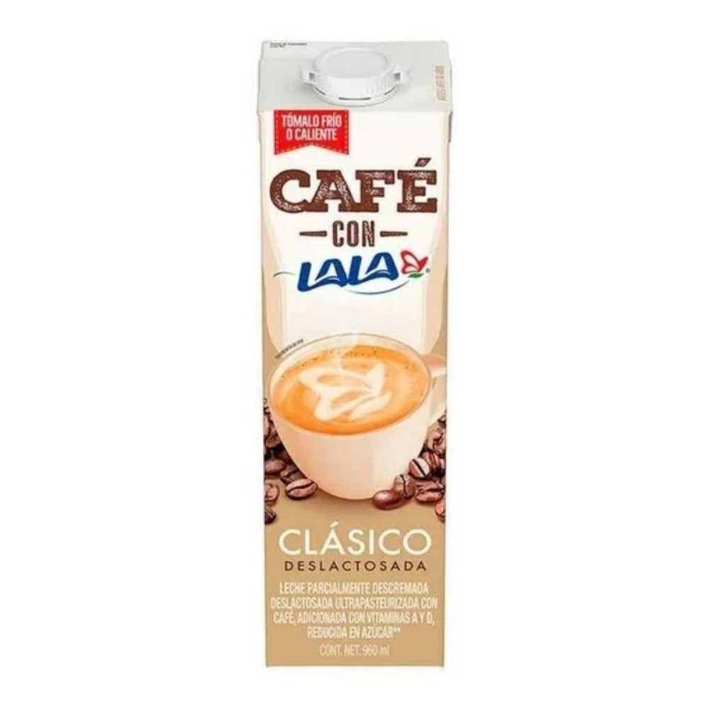Leche parcialmente descremada, deslactosada, ultrapasteurizada con café, adicionada con vitaminas A y D, reducida en azúcar.