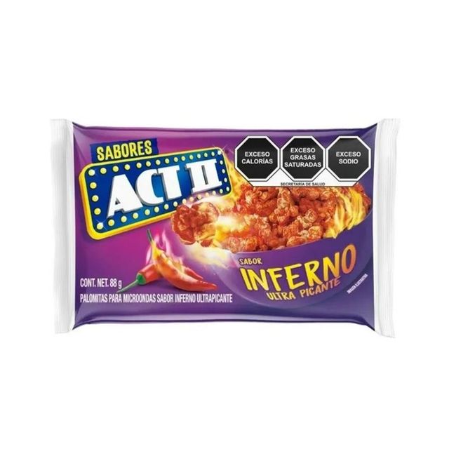 Palomitas para microondas sabor Inferno Ultra picante ACT II, en presentación de sobre con 88g