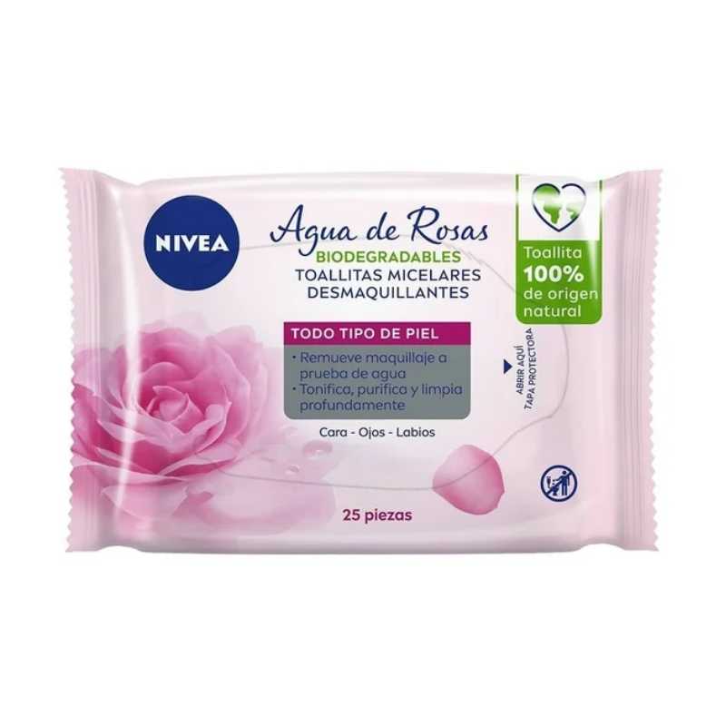 Toallitas Micelares Desmaquillantes Nivea con Agua de Rosas con 25pzas